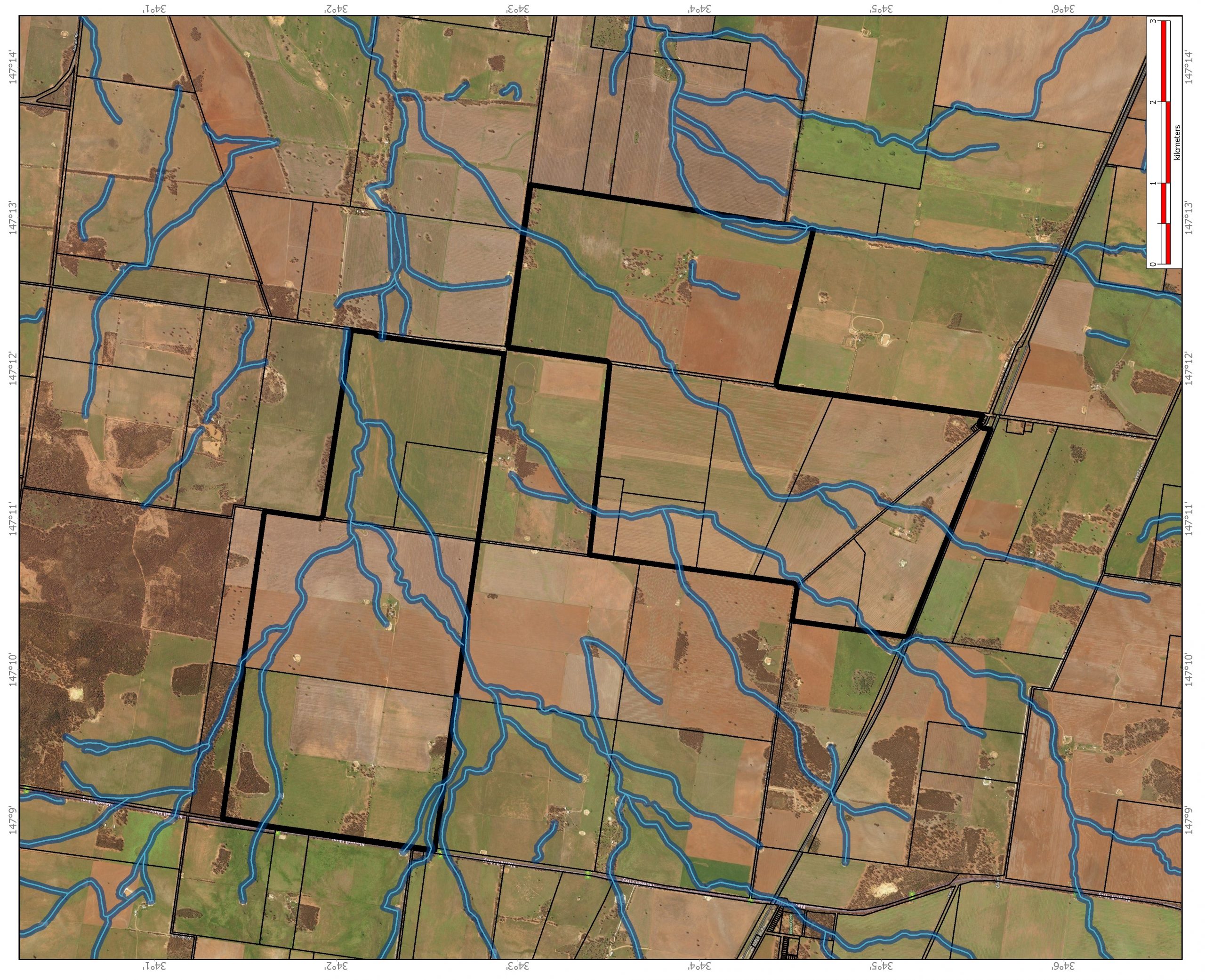 A client has a choice of map types to be used in the groundwater exploration project. However, generally these choices will be guided by a Phi’on consultant based on airborne data coverage for the area, the size of the property and groundwater needs for the client’s enterprise. Once the maps are produced by Phi’on, the client will be sent copies of the maps by email. The client will then book (bookings@phion.com.au) a telephone consultation time with a Phi’on scientist. These maps will be further used onsite to brief the client and to guide the field work to locate the groundwater bores (see images below).